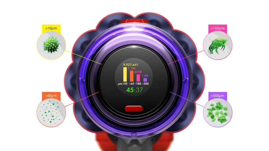 Displej LCD informuje o tom, co bylo vysáto, a v reálném čase poskytuje vědecký důkaz důkladného čištění.3