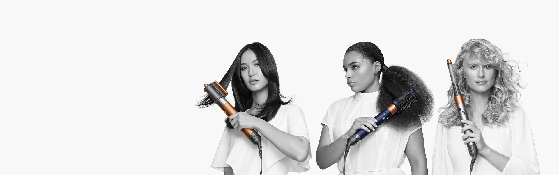 - S barely pro natáčení a vlnění v obou směrech, kartáči pro kontrolu a tvarování a multifunkčním vyhlazovacím vysoušečem Coanda, který vysuší, vyhladí a skryje poletování vlasů.